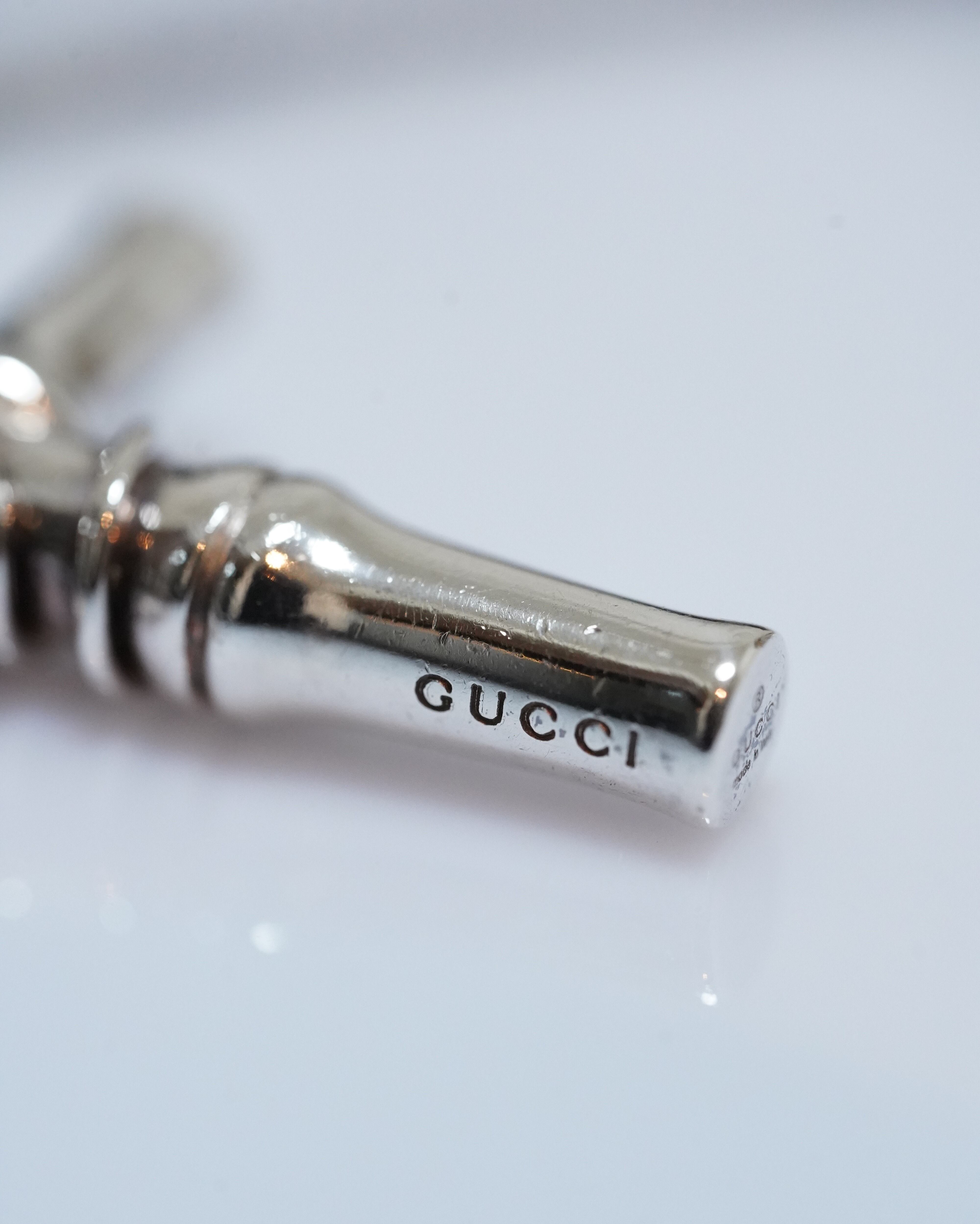 バンブーをモチーフとしたペンダントトップはコレクションを象徴する代表的なディテール。また細やかなベネチアンチェーンが首回りに艶をもたらしながら、トップの主張を引き立てます。